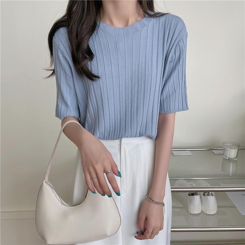 니트티 박시 반팔 상의 캐주얼 레깅스 여하 니트 반팔티