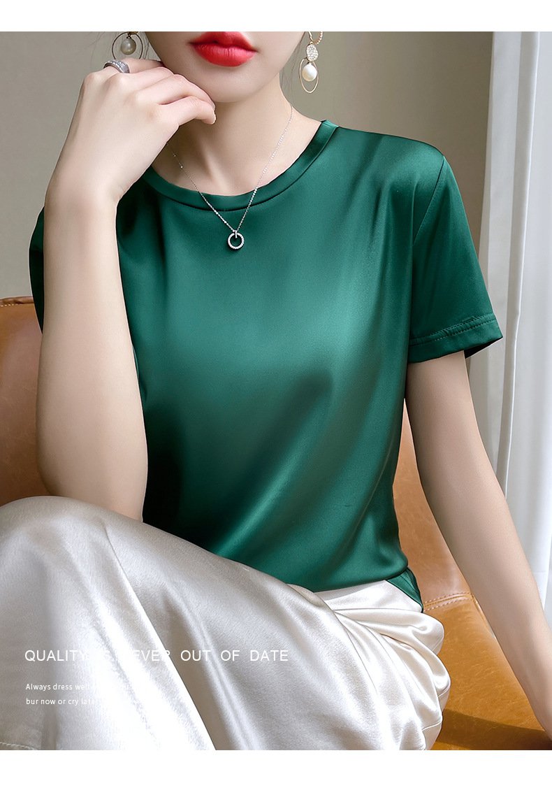 여하 루즈핏 뽕나무 실크 새틴 티셔츠 여 반팔 라운드 반팔 여름 여복 레깅스 아세트산 새틴 티셔츠