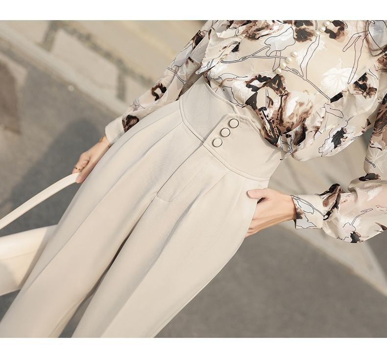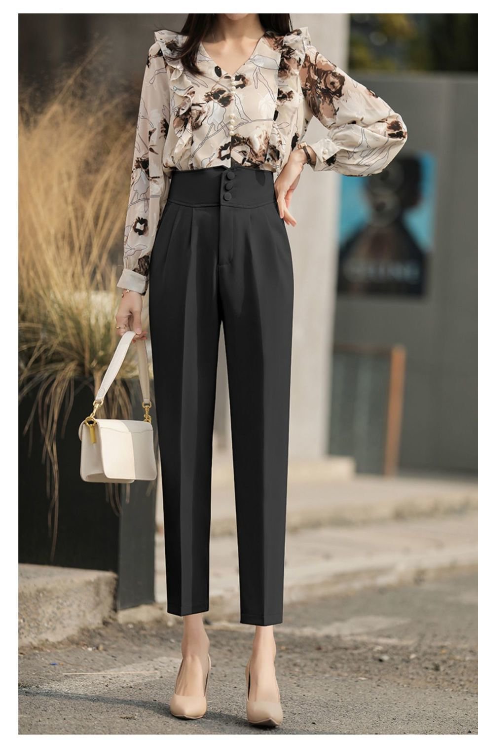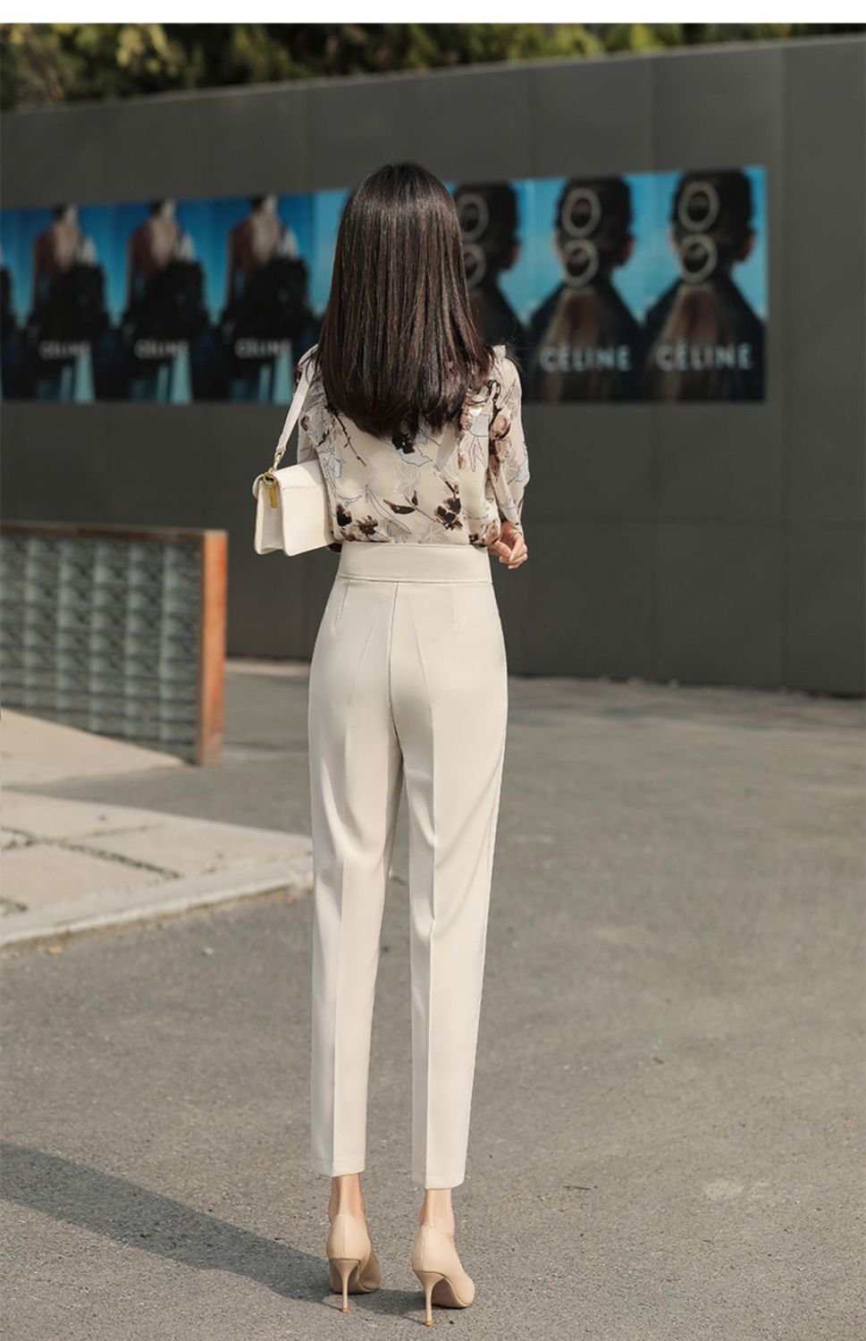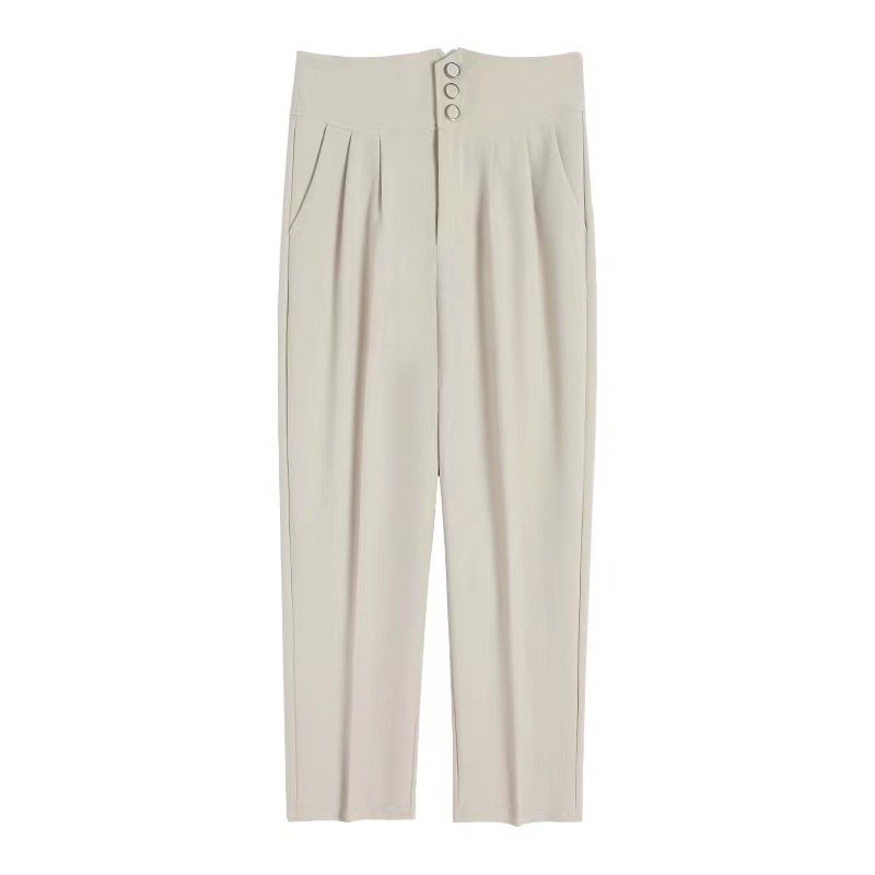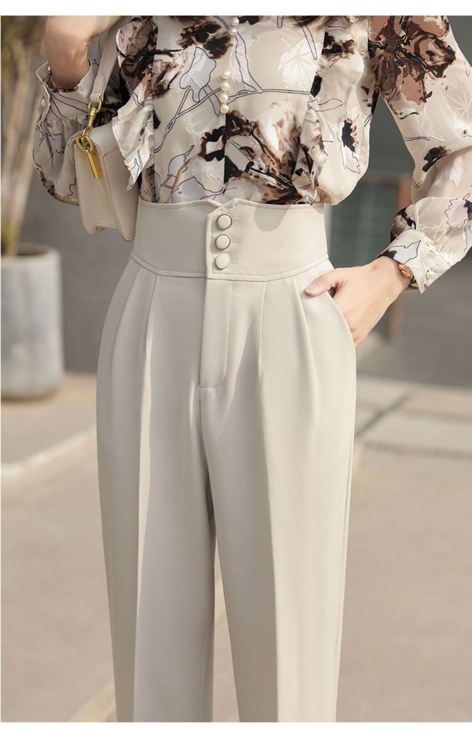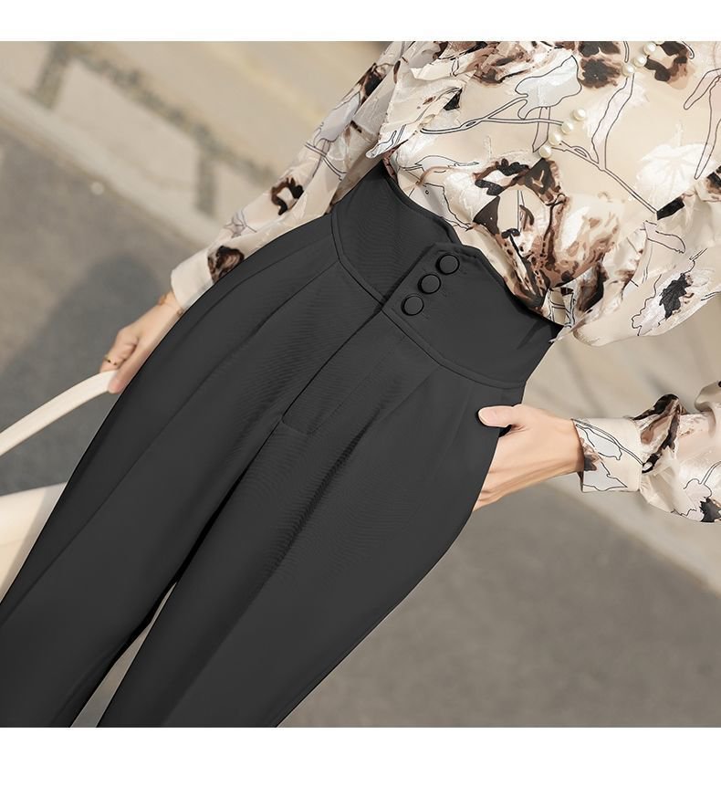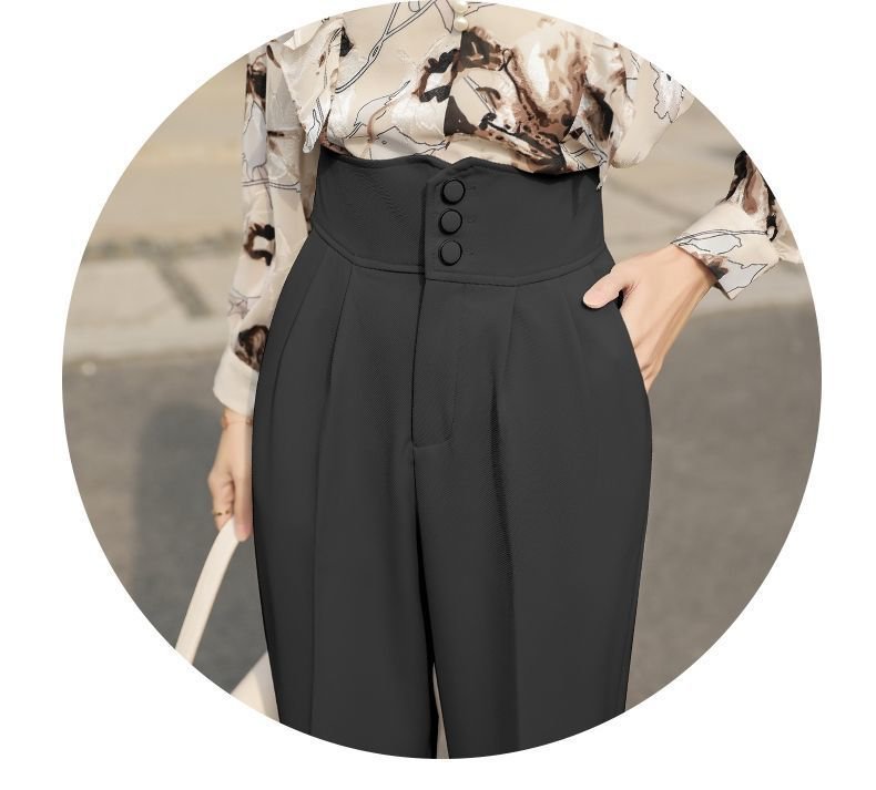 정장바지 여 슬림 배기팬츠 하이웨스트 봄 와이드 캐주얼 정장바지 9부 배기팬츠 작업복 여성