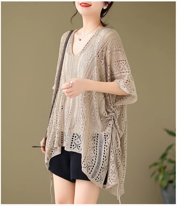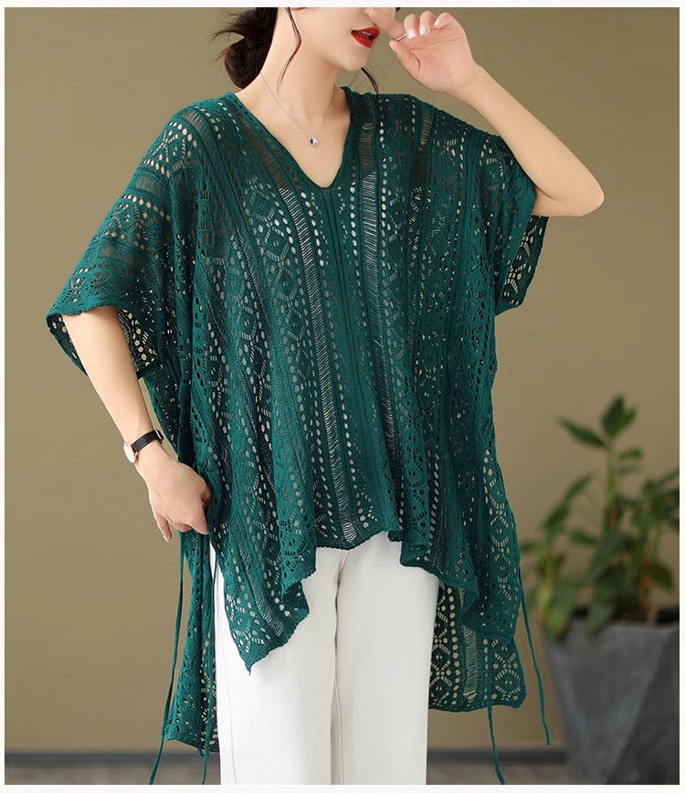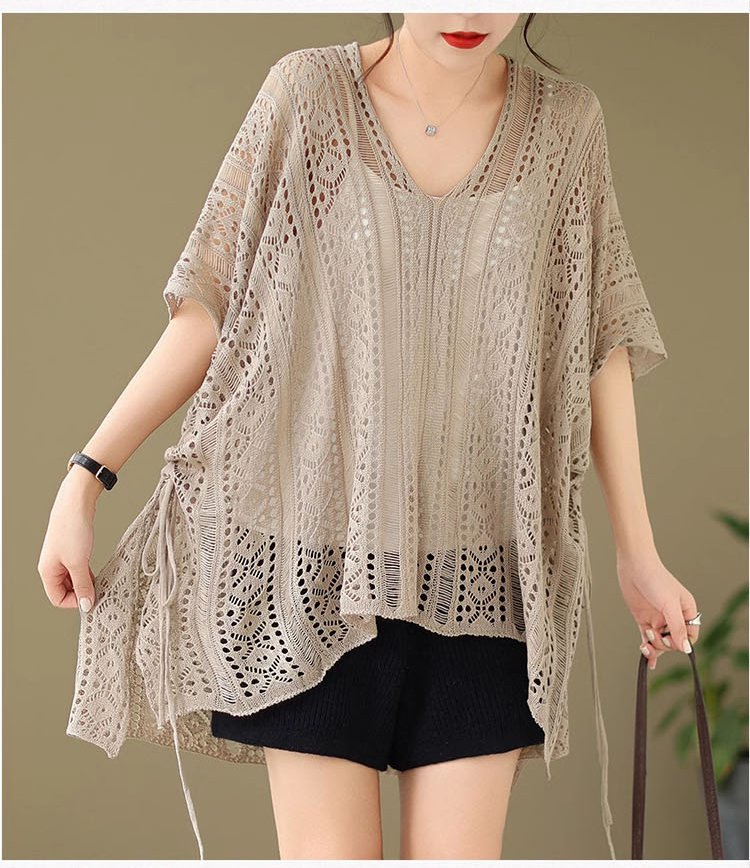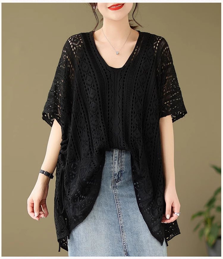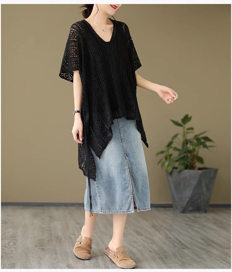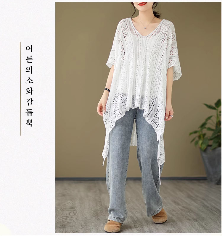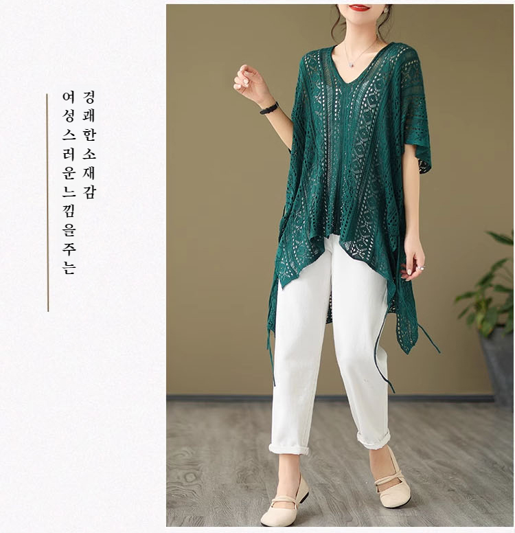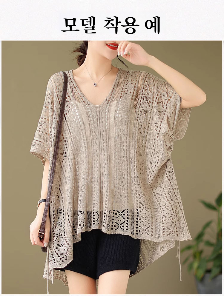 여하 디자인 감각 날씬해 보이는 감령 모던 상의 펀칭 니트 블라우스 상의