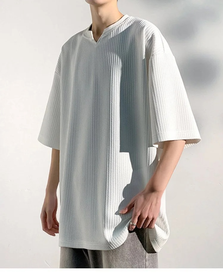 패션 빅사이즈 반팔티 멋쟁이 남자 5부 브이넥 루즈핏 풀오버 반팔 상의 학생 반팔티